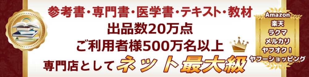 毎年着実成長しており、Amazonマーケットプレス・ヤフオク・ヤフーショッピング・楽天市場・メルカリ・ラクマで常時20万点以上の参考書・専門書・医学書・大学教科書・予備校テキスト・教材を取り揃え、これまでに500万名以上のお客様に販売するなど、参考書・専門書・医学書・大学教科書・予備校テキスト・教材の買取と販売でネット最大級になりました。