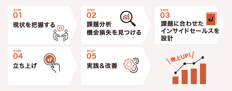 「営業を押し上げて、営業を動かす仕組み」をインサイドセールスで作ることで、経営者の《売上を伸ばしたい》という想いに応えます。