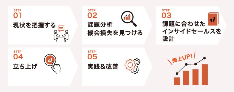 営業と共に売上アップに動くインサイドセールスを導入することで「営業を力強く支え、営業を動かす仕組み」が社内に整い、継続的に売上を伸ばしていくことが可能になります。