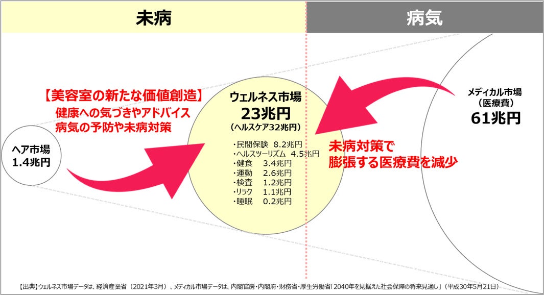 当社は、これら病気の一歩手前の「未病」という状態において、日常生活で利用する美容室を新たな健康への気づきの場として役割を創ることで、医療費増大といった大きな社会課題を解決することができればと考えております。