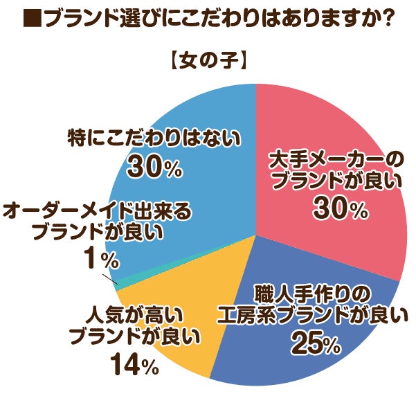 次点は男女ともに大手メーカーで、女の子では工房系ブランドを検討している方の割合も多くなっています。