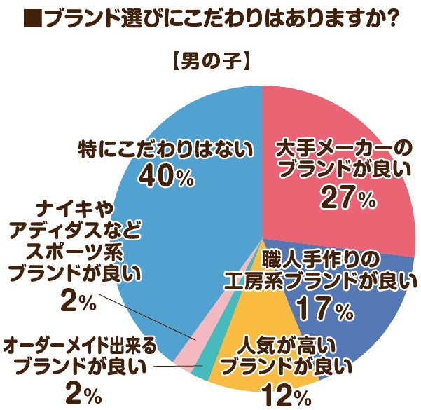 ブランド(メーカー)選びについての質問では、男女ともに「特にこだわりはない」が1位となりました。