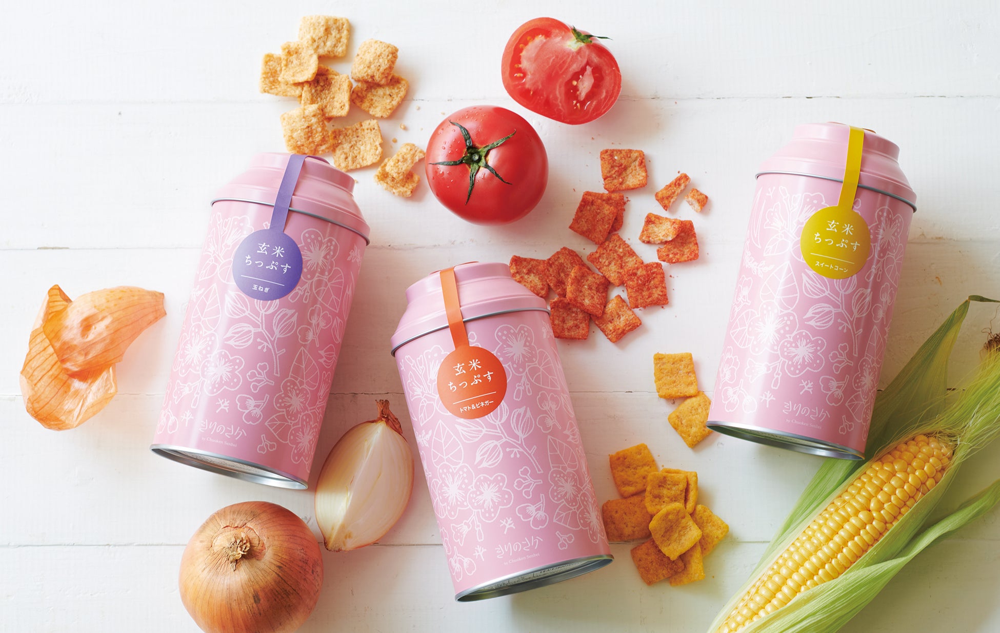 せんべい・おかきを「食べる」「選ぶ」「贈る」という若い世代が、年々少なくなってきていることが、米菓業界全体の課題でした。そこで、若い世代の人にも、もっと身近に米菓を楽しんでいただきたい、という想いから、今まで体験したことが無い、新しいおかきのスタイルで「おかきのシーンをときめく時間にすること」を目指したブランドが、「きりのさか」です。