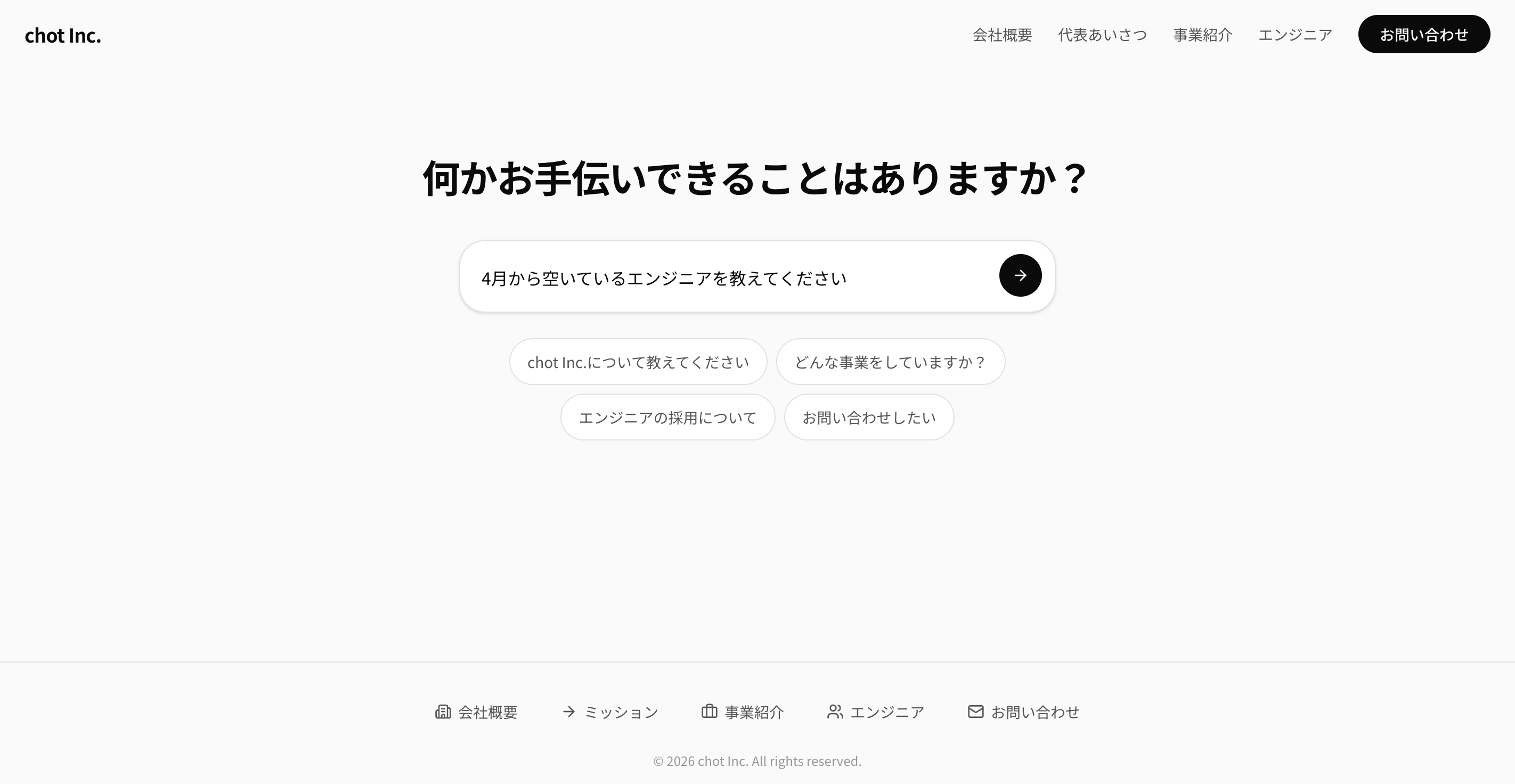 ちょっと株式会社(本社:東京都中野区、代表取締役:小島 芳樹、以下「当社」)は、AIアシスタントをWebサイト内に搭載し、訪問ユーザーとの対話を通じて最適な情報・提案をおこなうエージェント型Webサイト「Agentic Website by Orizm」の提供をおこないます。本サービスにより、従来の情報提供が主流のWebサイトから、ユーザーとの対話を軸とした次世代の顧客体験へと変化します。