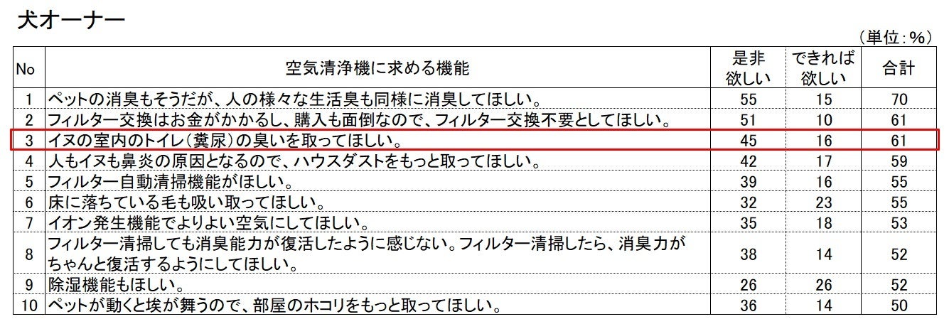 空気清浄機を買う目的1位は犬オーナー、猫オーナーともに「消臭」