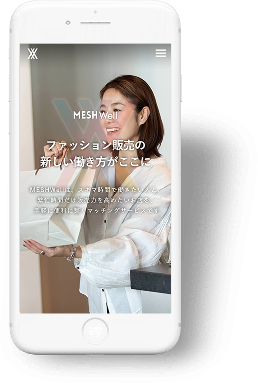 MESHWellは、スキマ時間を活用して働くフリーランスと、繁忙時間に人員不足を解消したい販売店を手軽かつ便利に繋ぐマッチングサービスです。