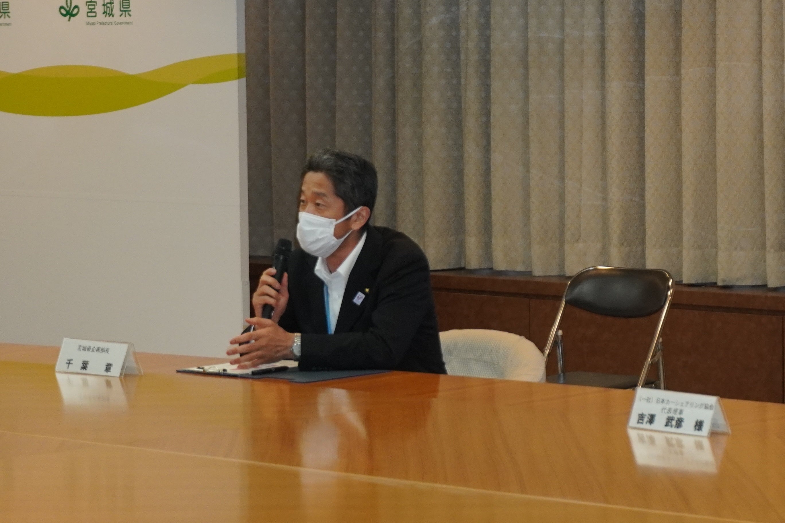 吉澤代表理事からは「東日本大震災では約15万台の車が被災しました。恐らく、日本国内において歴史上最も車被災を経験しているのが宮城県であります。車を被災すると生活復旧に大変な支障が出て困る方が多いため、車被災で困る状況を変えたいという思いで取り組んできました。災害時に被災者は車のサポートを受けられるように、宮城県の中でしっかりと仕組みを作りたいと思い、今回の協定は、それを実現する上で非常に重要な一歩を踏み出せたと思っております。今や日本のどこで災害が起きてもおかしくない状況です。これから更にこの仕組みを宮城県から全国に波及させていきたいと考えております」と発言されました。