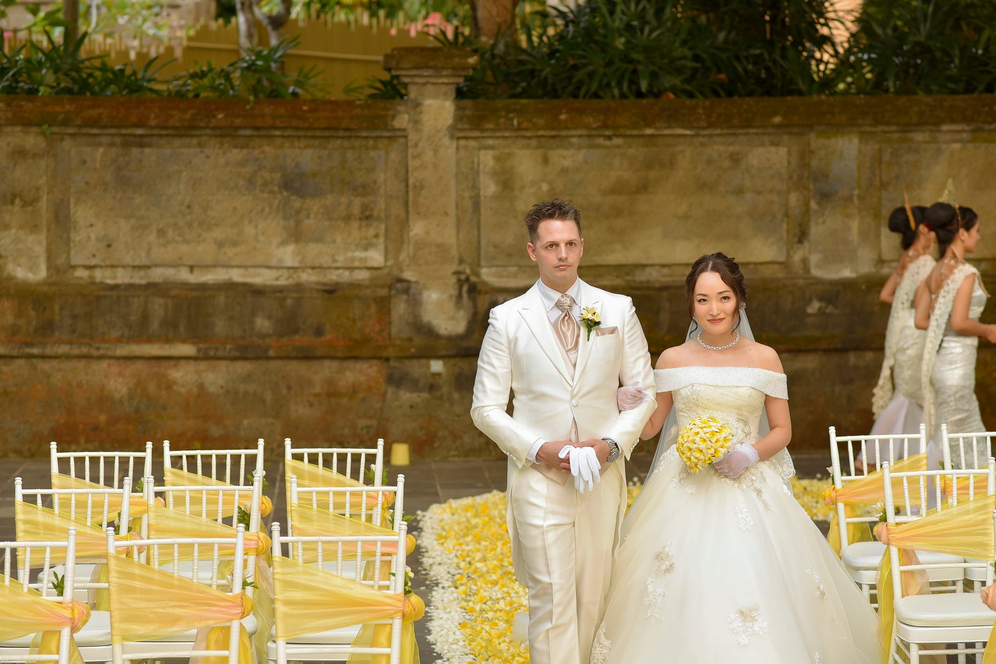 バリ島を選ばれたのは、当初海の綺麗な景色を見渡せるようなところで式を挙げたいとの思いや、
