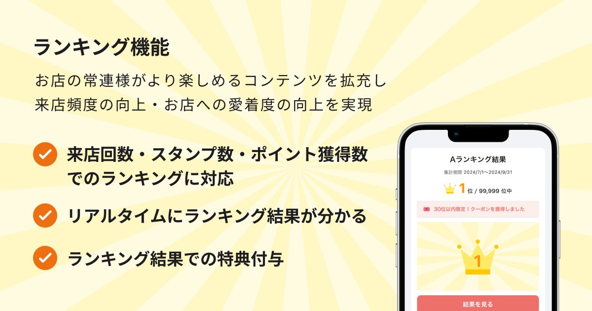店舗の顧客体験を向上!来店ユーザー「ランキング機能」をリリース開始。