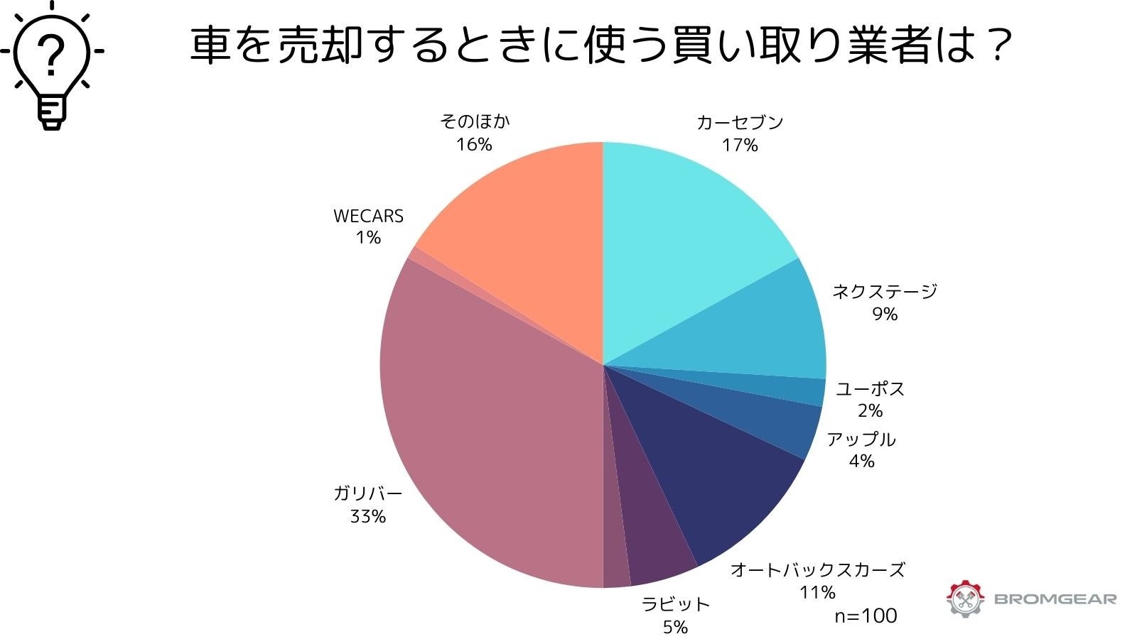 100人にアンケートを実施したところ、ガリバーが多い結果となりました。