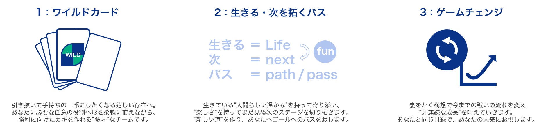 新しいタグライン"生きるワイルドカードが次を拓くパスになる ゲームチェンジカンパニー"は、私たちの使命と価値観を明確に表現しており、私たちが顧客のマーケティング活動における“ワイルドカード”のような存在となり、新たな可能性を切り開いていくことを表しています。私たちは、この新しいメッセージが、私たちがスタートアップ/ベンチャー企業に対してどのように価値を提供し、それらの企業がより大きな成功を収めるためにどのようにサポートしていくかを、より明確に伝えられるものだと考えております。