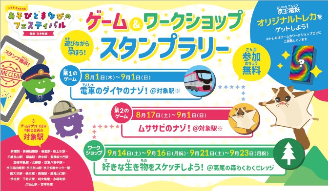 本イベントでは、ゲーム編とワークショップ編の2種類のイベントを実施します。ゲーム編では、8月1日(木)から9月1日(日)までの間、京王電鉄の主要事業である鉄道に関連する車掌のおしごとについて学ぶことができるゲームと、高尾599ミュージアムの協力のもと作成した、学芸員のおしごとと沿線の観光地である高尾山に生息するムササビについて学ぶことができるゲームに参加できます。ワークショップ編では、剥製を観察し、高尾山に生息する生き物などをスケッチします。ネイチャージャーナリングの手法を用いることで、子どもたちが生き物への理解を深めることを目指します。