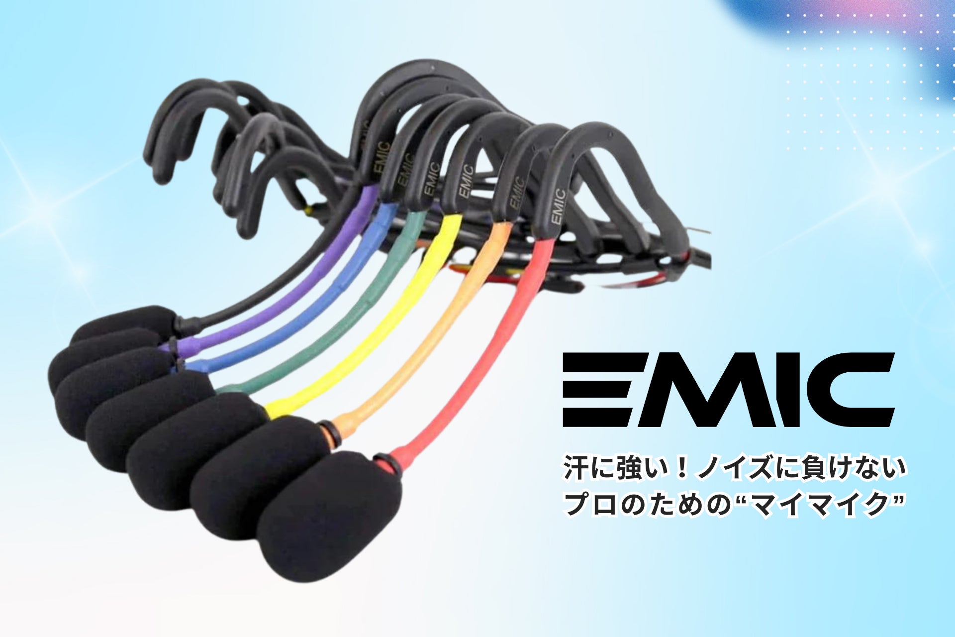 Fitness専用ヘッドマイク「EMic」とは、Fitness指導に最適なプロ仕様のヘッドマイクです。 汗や水に強い防水仕様、クリアなサウンドのマイマイク。1日に2~3クラスのグループレッスン指導に適しています。