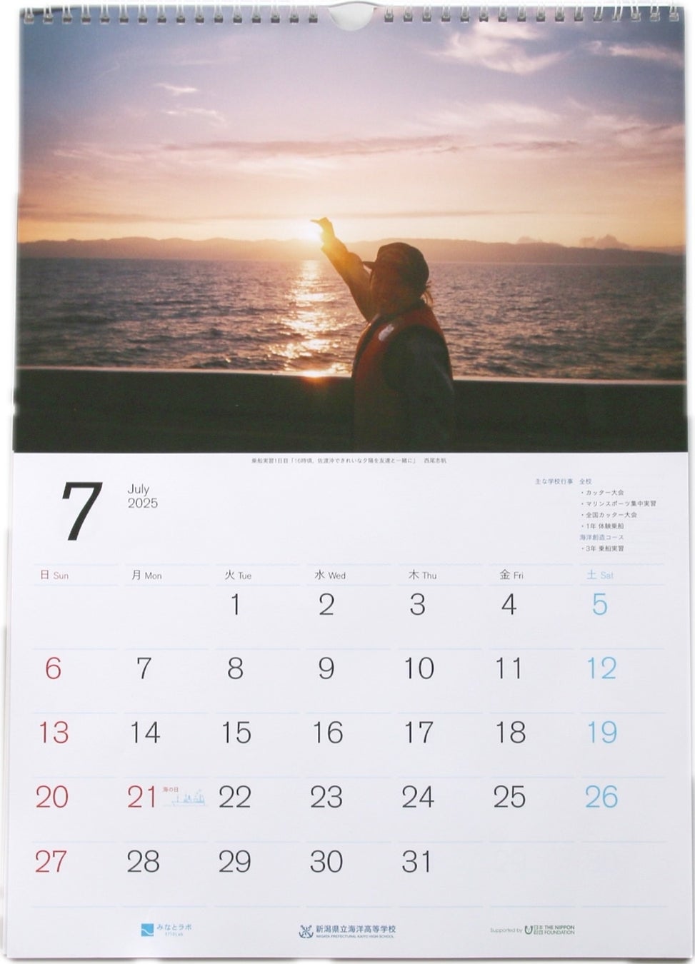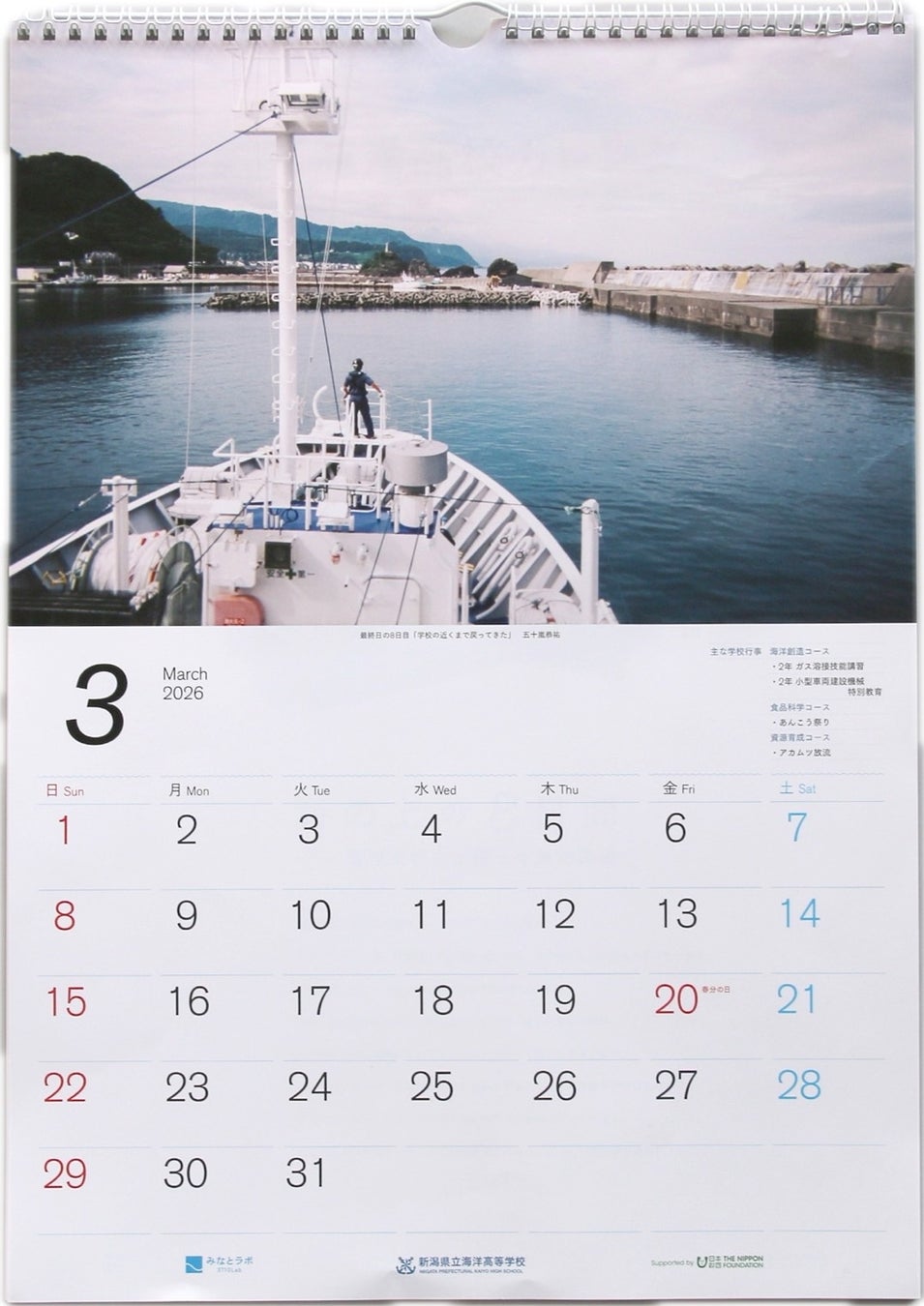 新潟県立海洋高等学校と一般社団法人みなとラボは、生徒が撮影した写真と対話の記録を収めた、海の学びを多くの人と共有する2025年度のカレンダーを、日本財団の助成により制作しました。