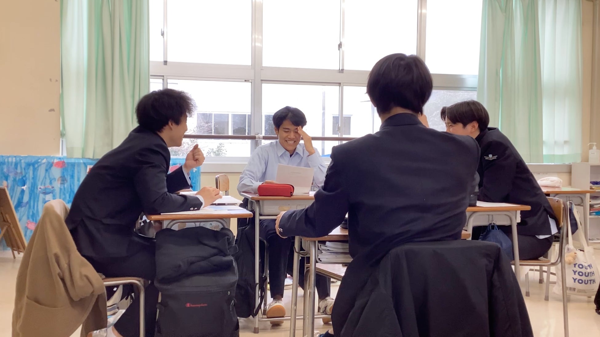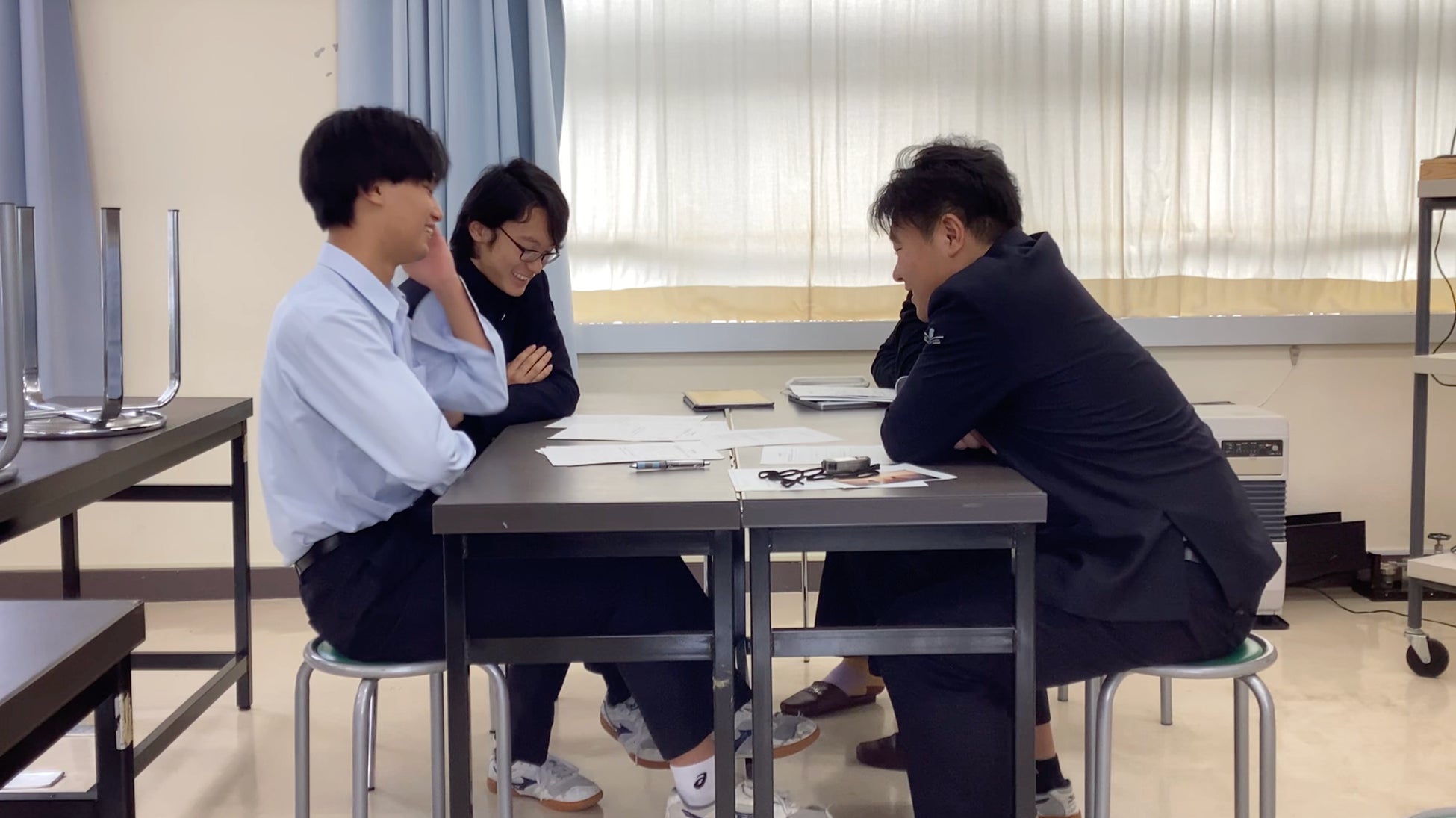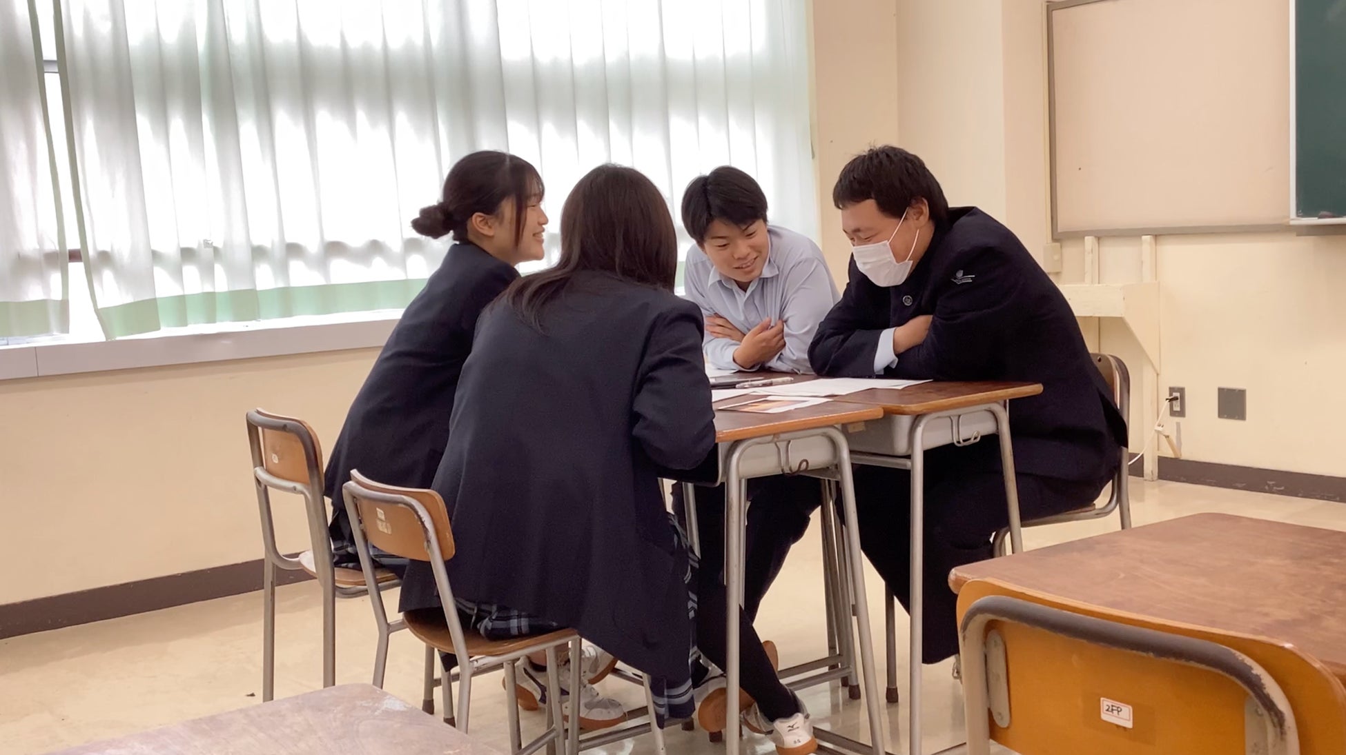 9月に行った乗船実習を振り返るために、「海洋高校で得たもの」「海洋高校で過ごしたからこそ知った海」をテーマにグループで話し合いながら、海洋高校での学びについて考えを深めました。これまであまり話す機会がなかった海洋高校での学びや海との関わりについて話し合い、質問を通じて視点を広げていきました。