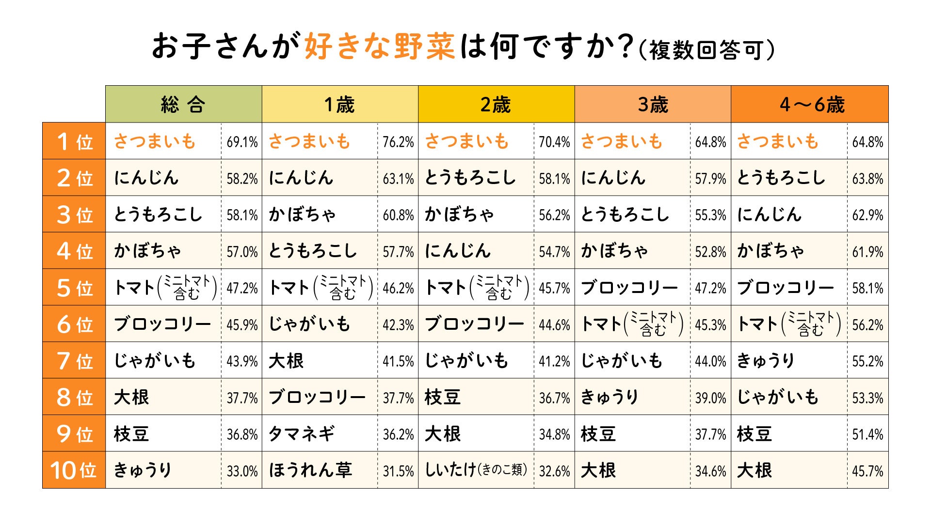 「幼児期の子どもが好きな野菜1位は『さつまいも』!」