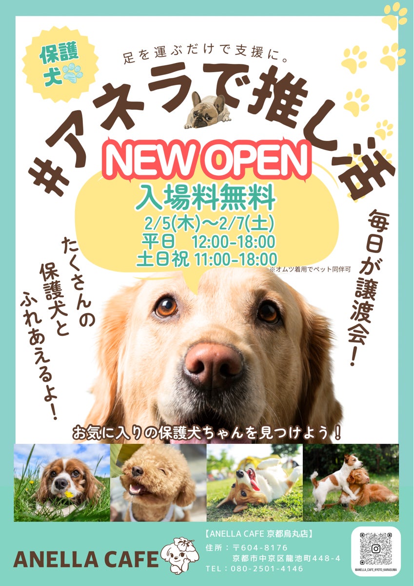 【京都初上陸】全国23店舗目となる保護犬ふれあいカフェ「ANELLA CAFE 京都烏丸店」2月5日(木)オープン。ずっとの家族探し×障がい者就労支援を通じて、動物や社会とのつながりを感じる機会に
