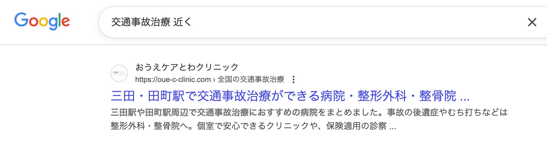 「交通事故治療 近く」「交通事故治療 整骨院」「交通事故治療 整形外科」