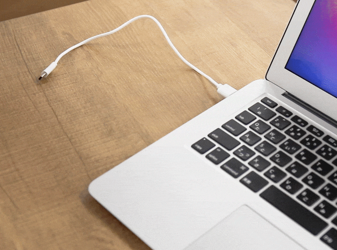 コンセントからの充電以外にもPCなどのUSB出力機器からも充電できます。