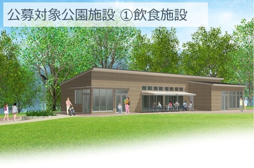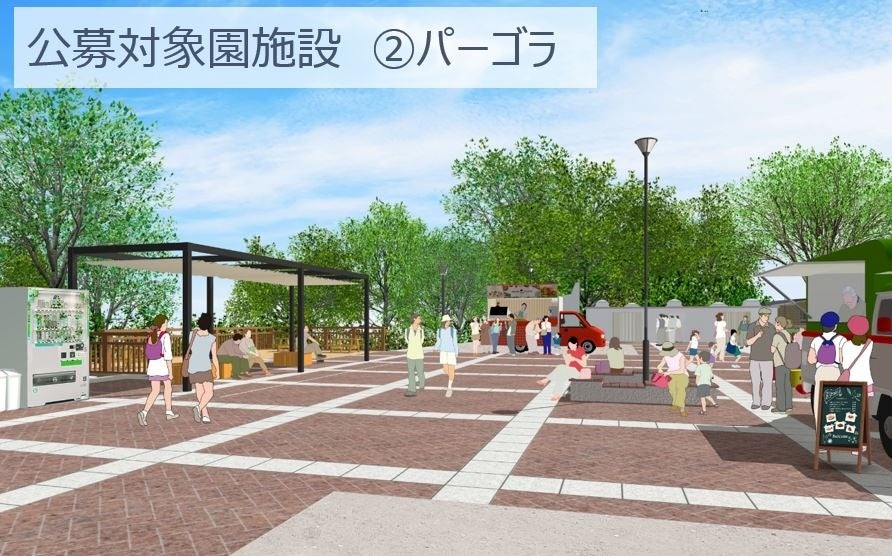 公募対象公園施設:1.飲食施設(カフェレストラン)2.パーゴラ