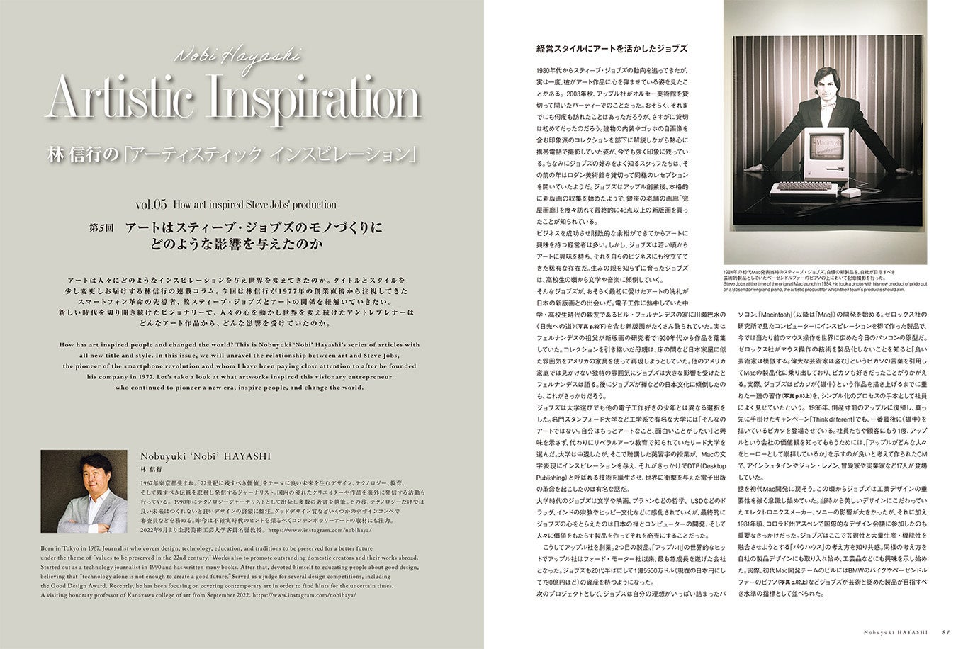 良い未来を生むデザイン、テクノロジー、教育、そして残すべき伝統を取材し発信するジャーナリスト林信行による連載第5回は林信行が1977年の創業直後から注視してきたスマートフォン革命の先導者、故スティーブ・ジョブズとアートの関係を紐解いていきたい。新しい時代を切り開き続けたビジョナリーで、人々の心を動かし世界を変え続けたアントレプレナーはどんなアート作品から、どんな影響を受けていたのか。