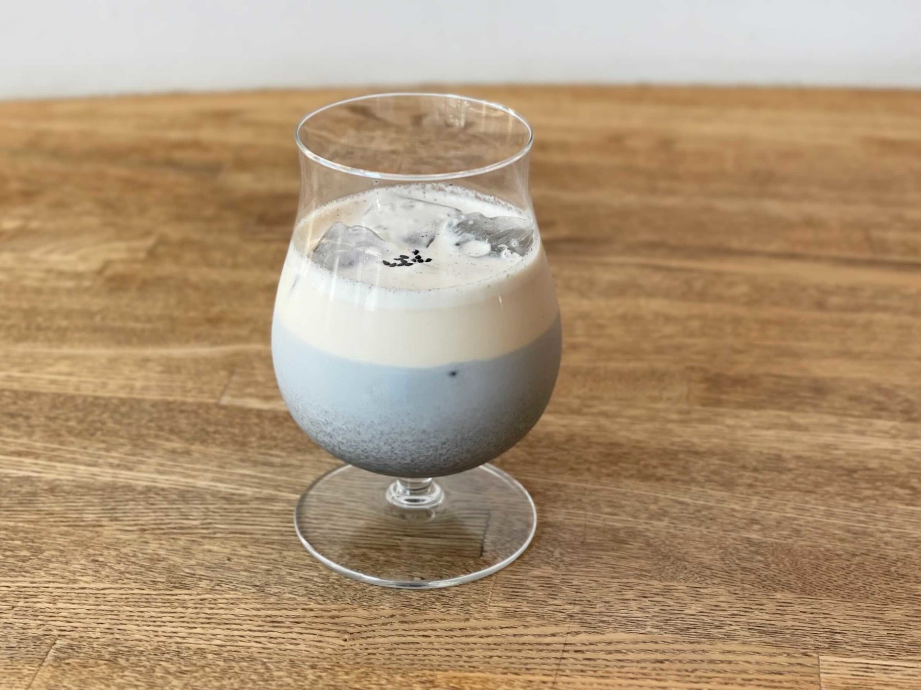 香ばしい黒ゴマソースとミルクを合わせたベースに、シェイクした黒蜜と生クリームをのせた2層仕立てのドリンクです。こだわりの2層仕立てでまったりとした味わいと、絶妙な黒ごま感をお楽しみいただけます。