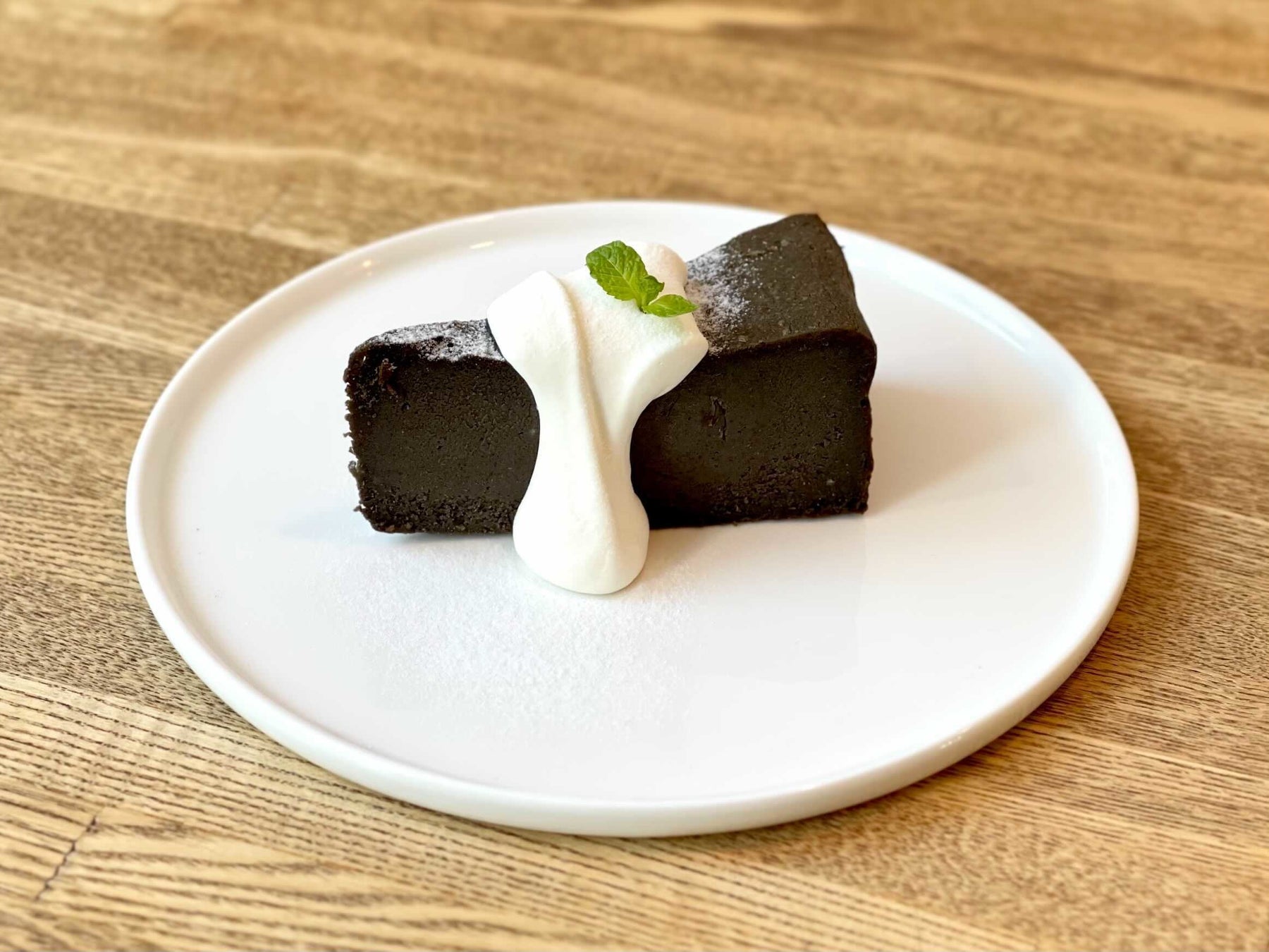 黒ゴマをたっぷりと使用し、しっとりとした食感に焼き上げた濃厚なチーズケーキです。香ばしく程よい酸味が特徴。甘さ控えめのふわとろな自家製生クリームでお楽しみください。