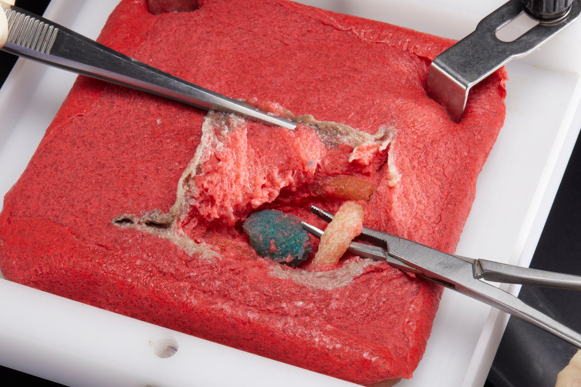 シリコンやプラスチック製のモデルを使ったトレーニング(ドライラボ)よりリアルで、生体を使ったトレーニング(ウェットラボ)より清潔なトレーニングを実現します。