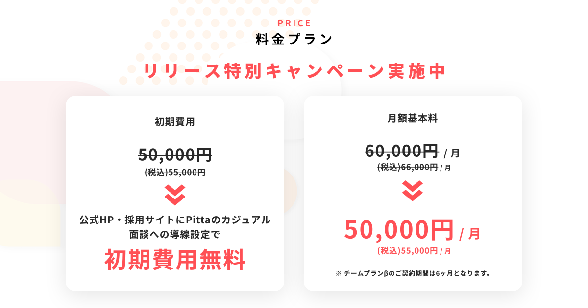 カジュアル面談のPitta、新サービス「チームプラン β」の提供開始を記念し、初期費用無料・月額割引になる特別キャンペーンを実施!