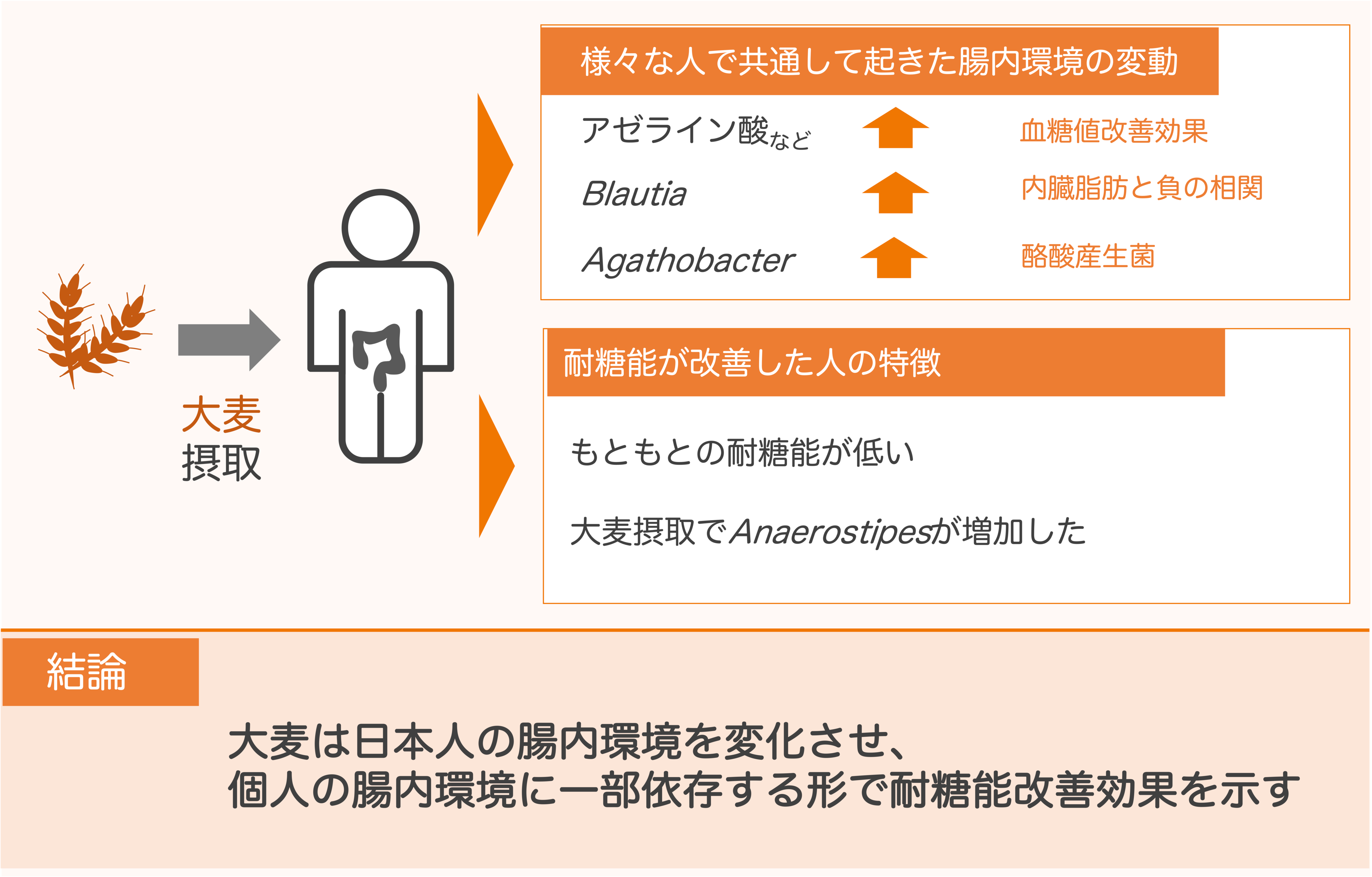 (メタボロゲノミクスにより、日本人における大麦の摂取による耐糖能改善と関連する腸内環境の特徴を明らかにしました:ランダム化比較試験)