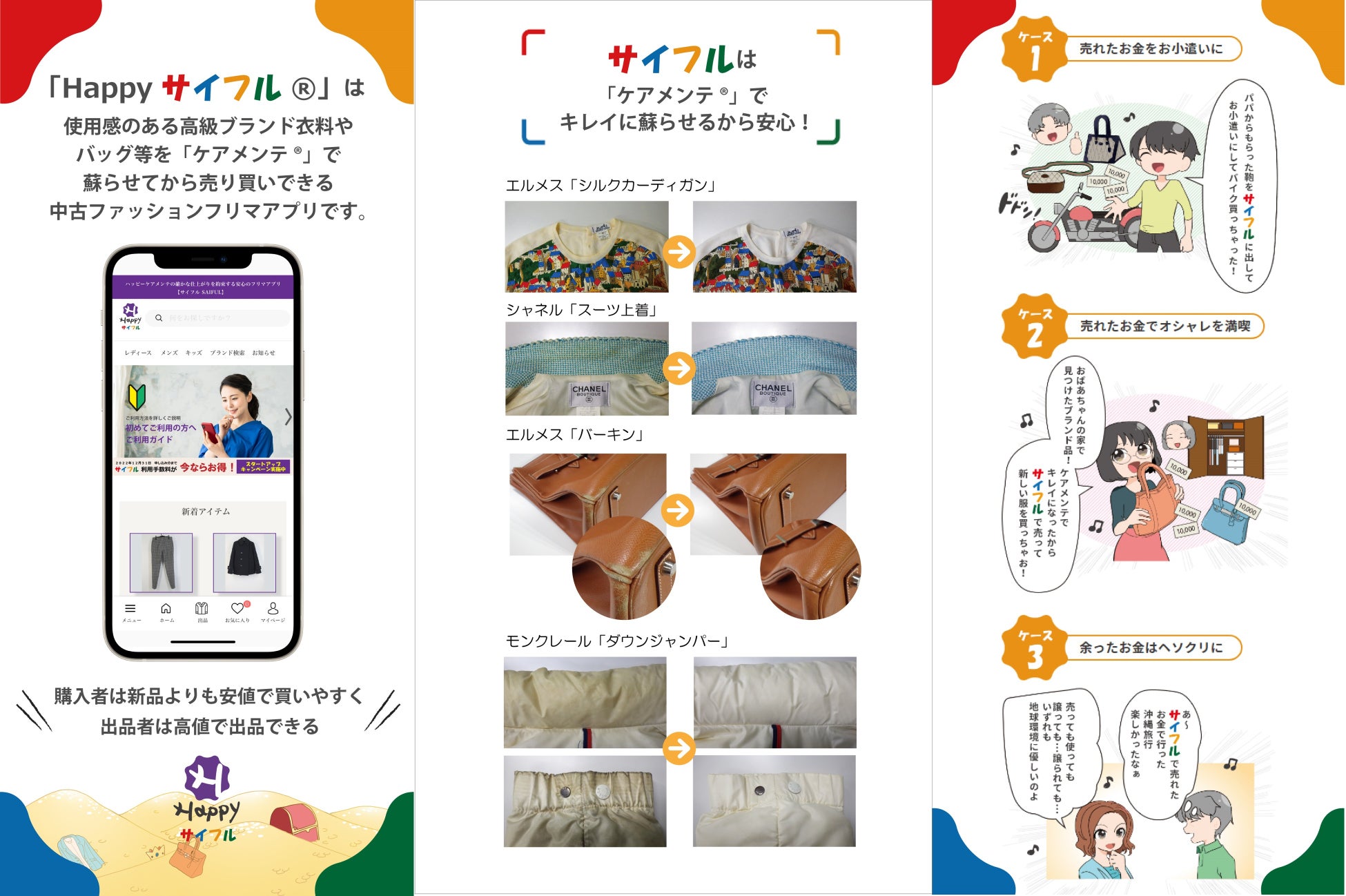 捨てられる運命の服飾品を新品同様に再生産する「ハッピーケアメンテ®」が、中古服飾品を新品同様にして個人間で「売り買い」できるフリマサービス『Happyサイフル®』を10月1日より開設!
