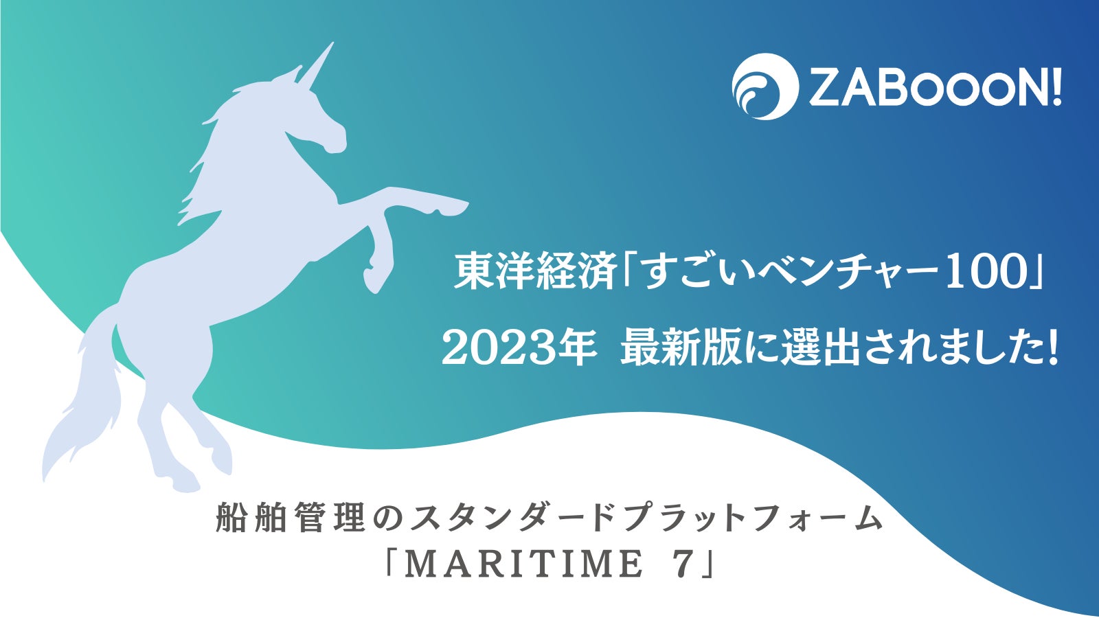 この度、船舶管理SaaS MARITIME 7を開発・運営する株式会社ザブーン (本社:東京都日本橋、代表取締役社⻑:戸高克也 )が、週刊東洋経済「すごいベンチャー100」に選出されたことをお知らせ致します。