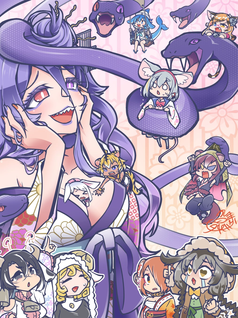 前半登場干支っ娘:兎谷美見(ウサギ)、羊宮アリエ(ヒツジ)、猿楽カノン(サル)、犬神コウ(イヌ)、猪坂摩利(イノシシ)、猫又夏梅(ネコ)、狸林まみ(タヌキ)、鹿角小姫(シカ)