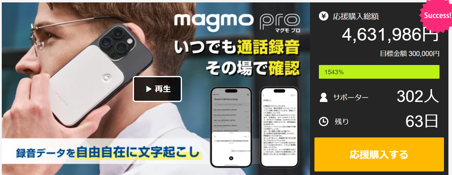 【Makuake目標金額1500%突破!】文字起こし機能付!iPhone対応スマホ通話レコーダー
