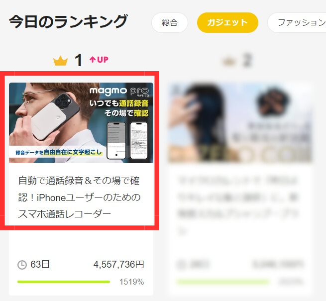 さらに、8月28日(月)付けMakuakeデイリーランキング「ガジェット部門1位」を獲得しました!