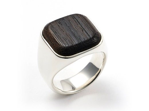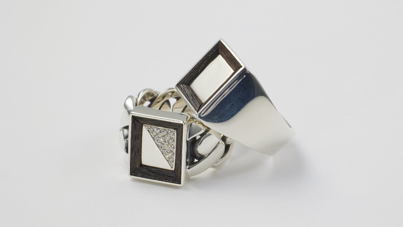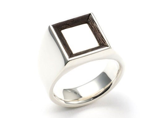 ミッドセンチュリー期の家具や額縁を思わせる、いつの時代にもハマるデザイン存在感を感じるピンキーを1つ着けることで、粋なアクセントに。ジュエリー品質の仕上げで高級感があるエボニーの木をひとつひとつ丁寧に切り出し繊細に組まれた額縁にデザインしました。石の種類やレーザー刻印でオリジナルのカスタムが可能です。以前は着けていたシルバーアクセサリーを年を重ねて着けなくなってしまった人、ヴィンテージデザインが好きでファッションに拘りがある人にお勧めします。幅広いライフスタイルに馴染み、日常の中でシーンを選ばず着けられるデザインですので、傷や汚れなど自分だけの“アジ”を出してお楽しみください。