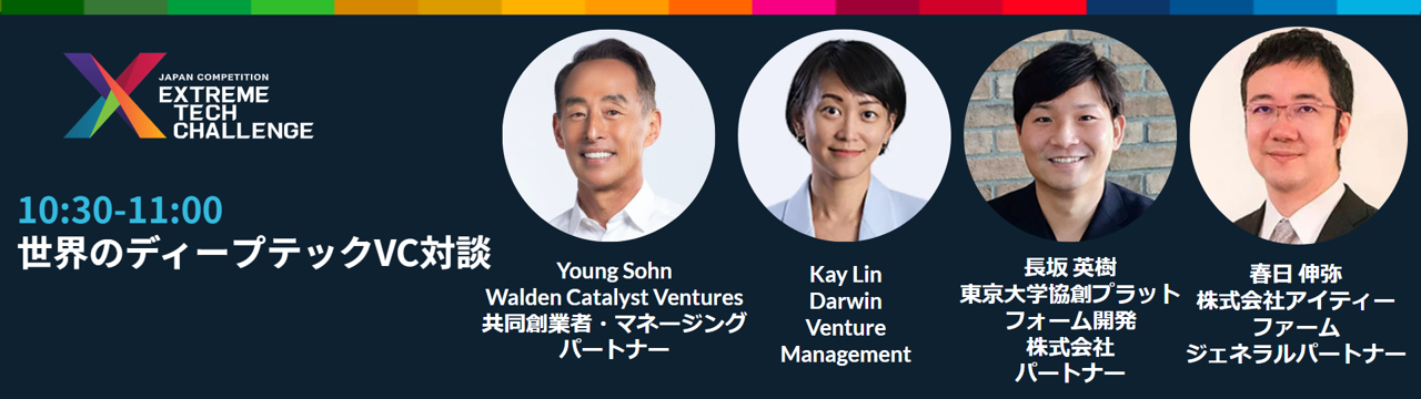 10:30:パネルディスカッション「世界のディープテックVC対談」(英語・同時通訳あり)