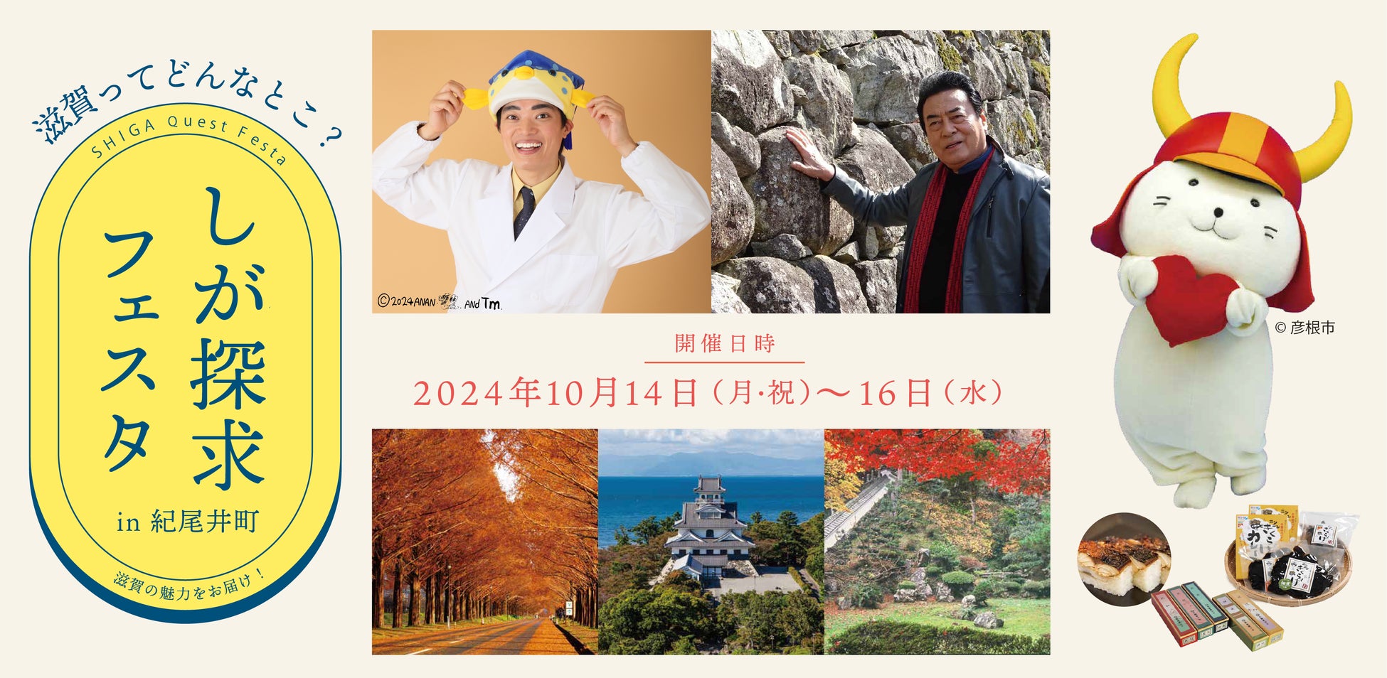 首都圏の方に滋賀を知っていただくため、令和6年10月14日(月・祝)〜16日(水)に、彦根井伊家ゆかりの土地である東京・紀尾井町の「東京ガーデンテラス紀尾井町」にて、滋賀の魅力満載なイベント「しが探求フェスタin紀尾井」を開催します!