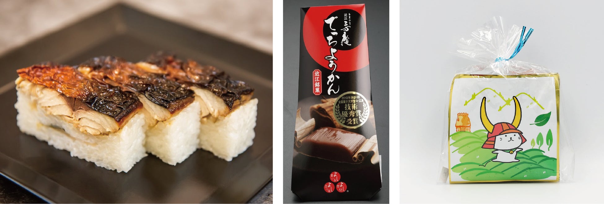 鯖寿司、でっちようかんをはじめとした滋賀の地産品、雑貨 等