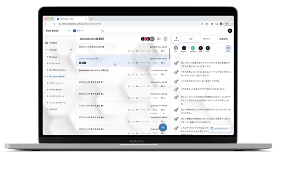 RUN.EDGEのRECOROKU開発チームでは、RECOROKUを活用し、議論ベースの会議や報告ベースの会議をより効果的に運営しています。全ての会議情報をRECOROKUで一元管理することにより、情報の透明性とアクセシビリティが向上し、迅速な意思決定をサポートします。
