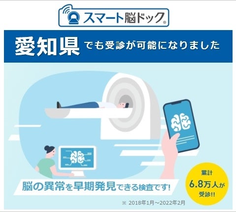 病院やクリニックのDX推進をサポートするスマートスキャン株式会社(本社:東京都中央区、代表取締役:濱野斗百礼、以下、スマートスキャン)は、脳ドックをWEBから簡単に予約、検査は受付からお帰りまで30分の「スマート脳ドック」が愛知県内の6つの医療施設で受診が可能になったことをお知らせいたします。