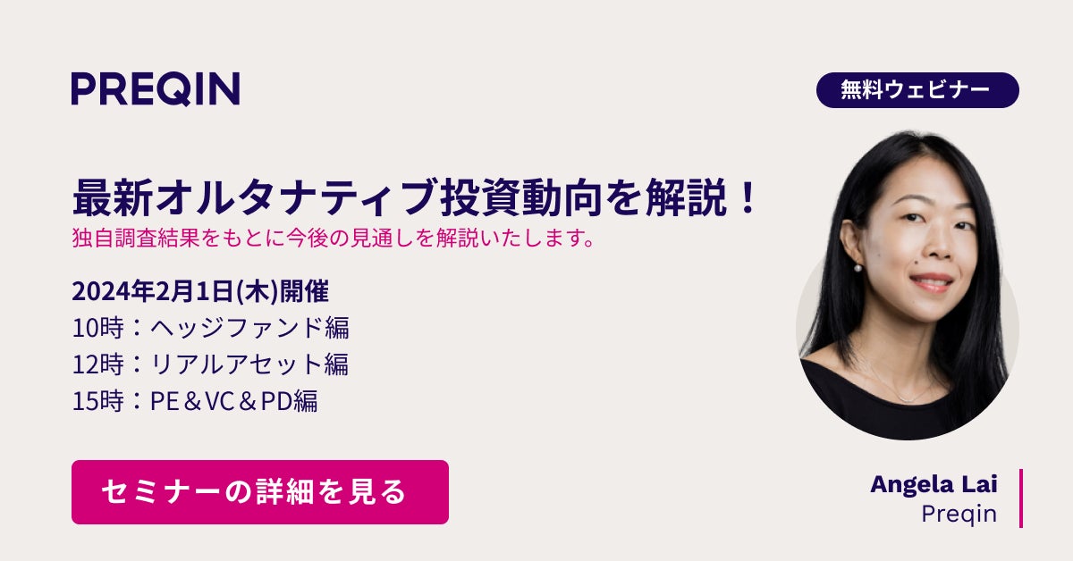 “Home of Alternatives” をコンセプトに、オルタナティブ投資に特化したデータ、ツール、インサイトを提供するPreqin合同会社(本社イギリス、以下プレキン)は、2024年版の「Preqin グローバルレポート」シリーズ計6冊と、「オルタナティブ投資動向2024」を公開しましたので、お知らせいたします。