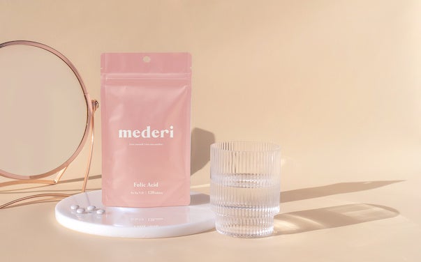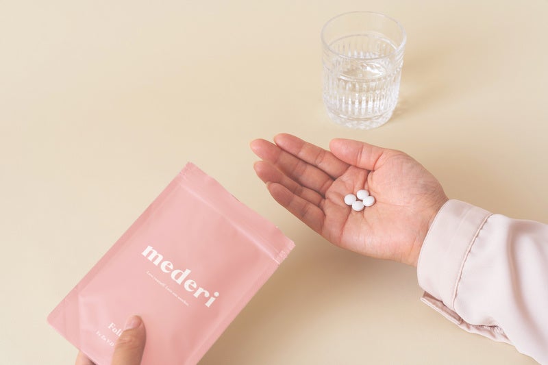 まず第一弾として管理栄養士監修、妊娠・妊活中におすすめの葉酸を800μg配合したmederi Suppelentの発売を開始しました。