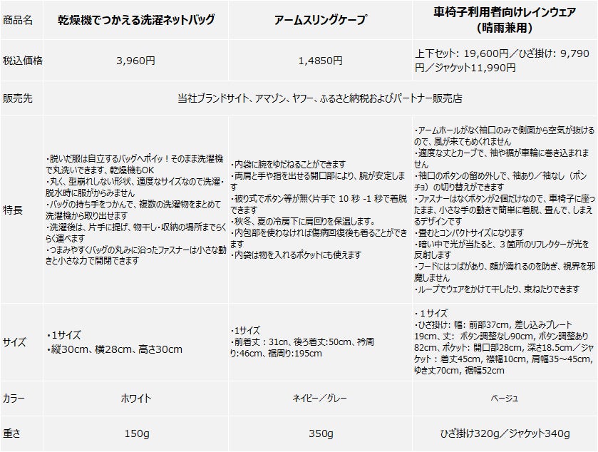 この度、当社と川崎市との協働で生まれ、応援購入サイト「マクアケ」のプロジェクトを経て7月よりマクアケストアにて発売を開始した「車椅子利用者用レインウェア」が、2024年度グッドデザイン賞を受賞いたしました。また、東京・大阪の研究機関との共同による上肢に不自由を伴う方の生活をサポートする「上肢サポートウェア」の開発の着手と、シリーズAラウンドを見据えた第2回資金調達について、10月14日開催の当社取締役会で決議いたしましたのでお知らせいたします。