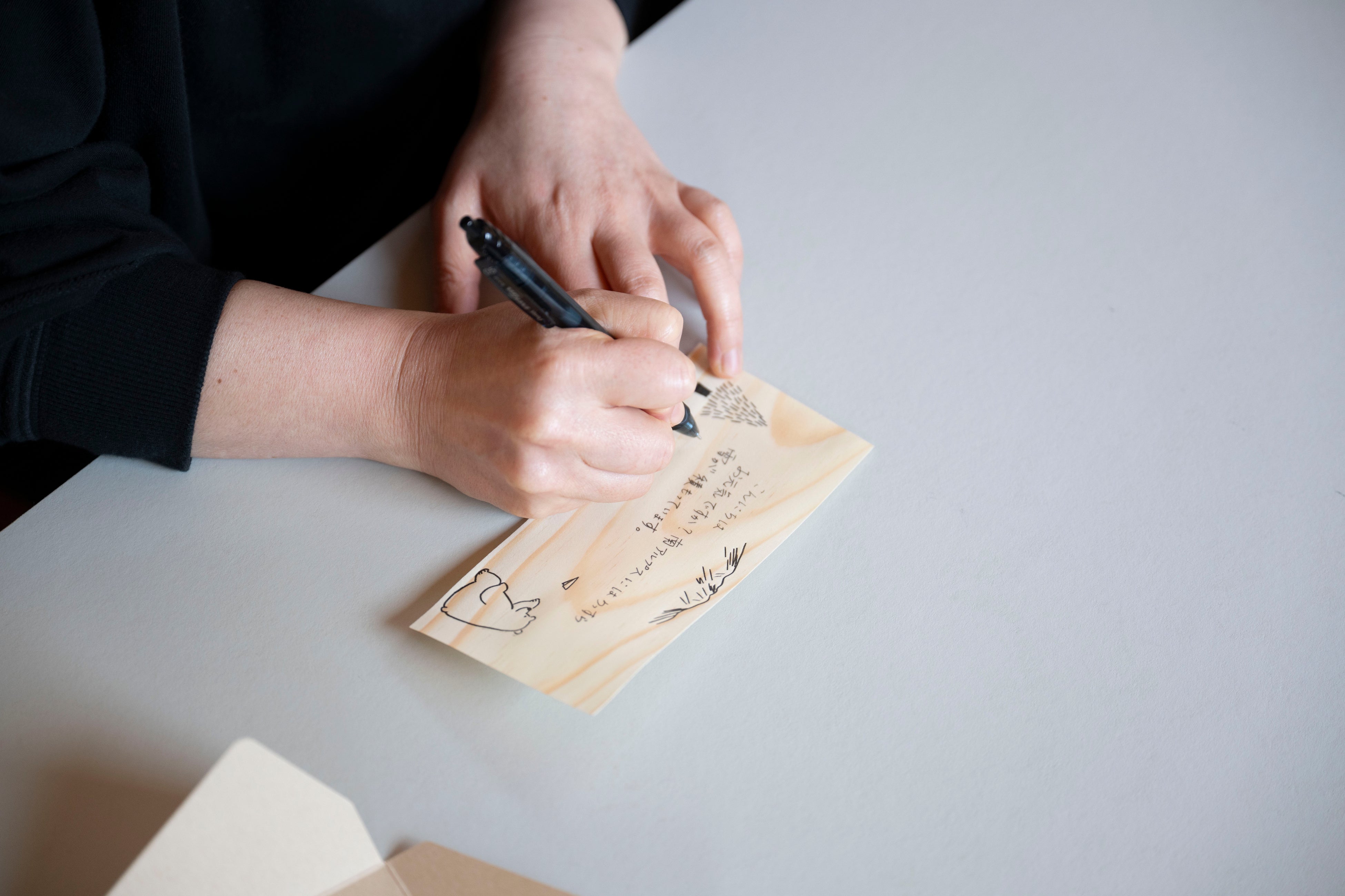 大切な人への想いを綴る手紙として、贈り物に添えるメッセージカードとして――木のぬくもりや香りが、書く人と受け取る人の心をやさしくつなぎます。メッセージとともに、森を感じるひとときを届けられる一筆箋です。