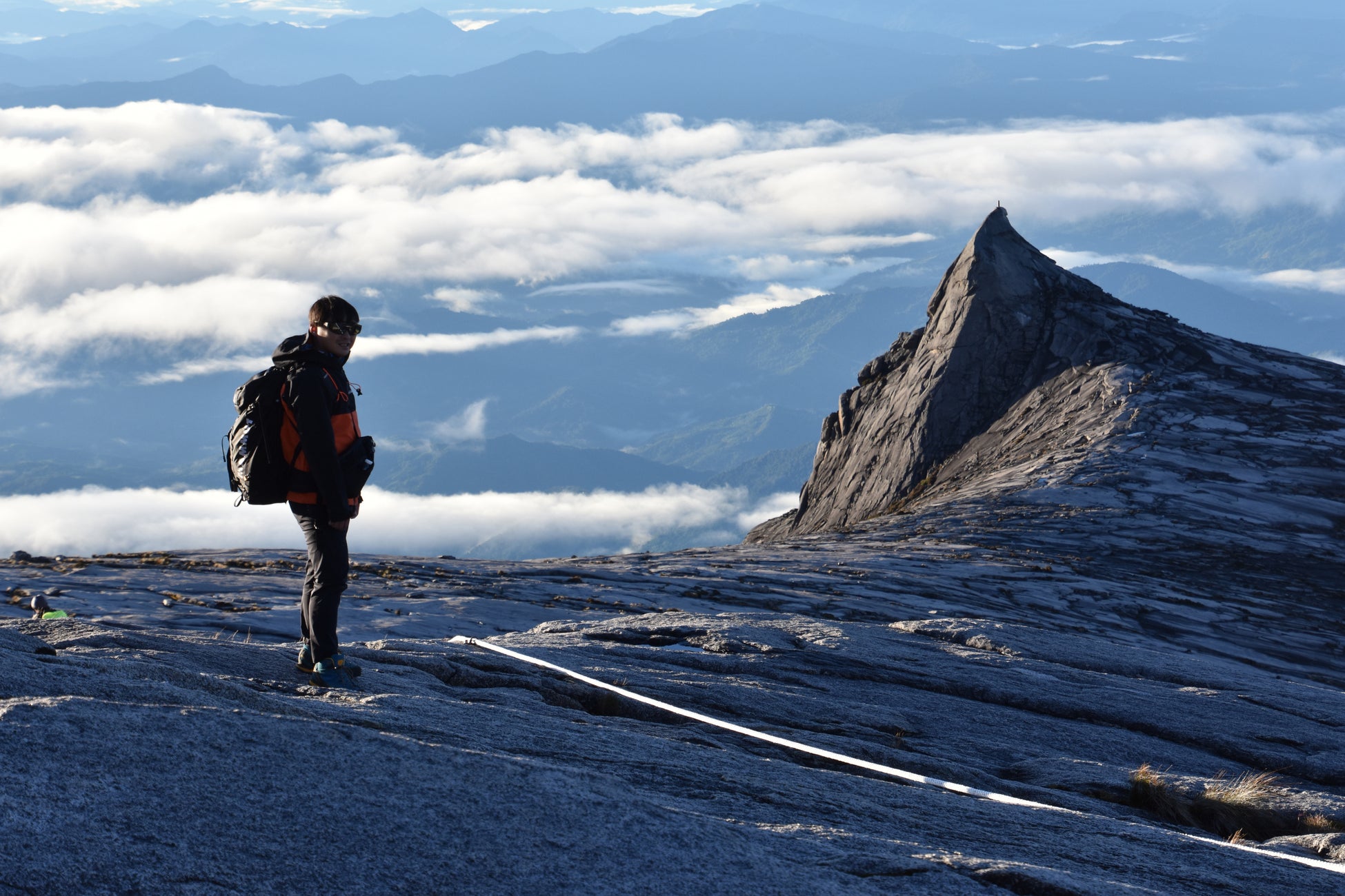 写真背景はサウスピーク、Mount Kinabaluはボルネオ島、マレーシアのサバ州にある東南アジア最高峰で4095m