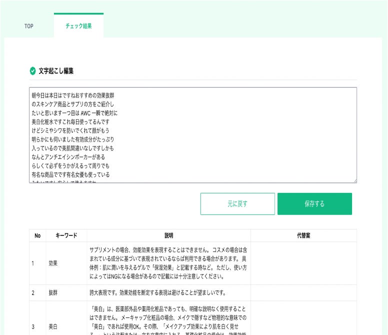 |広告表現チェックツール『コノハ』チェック画面新デザイン