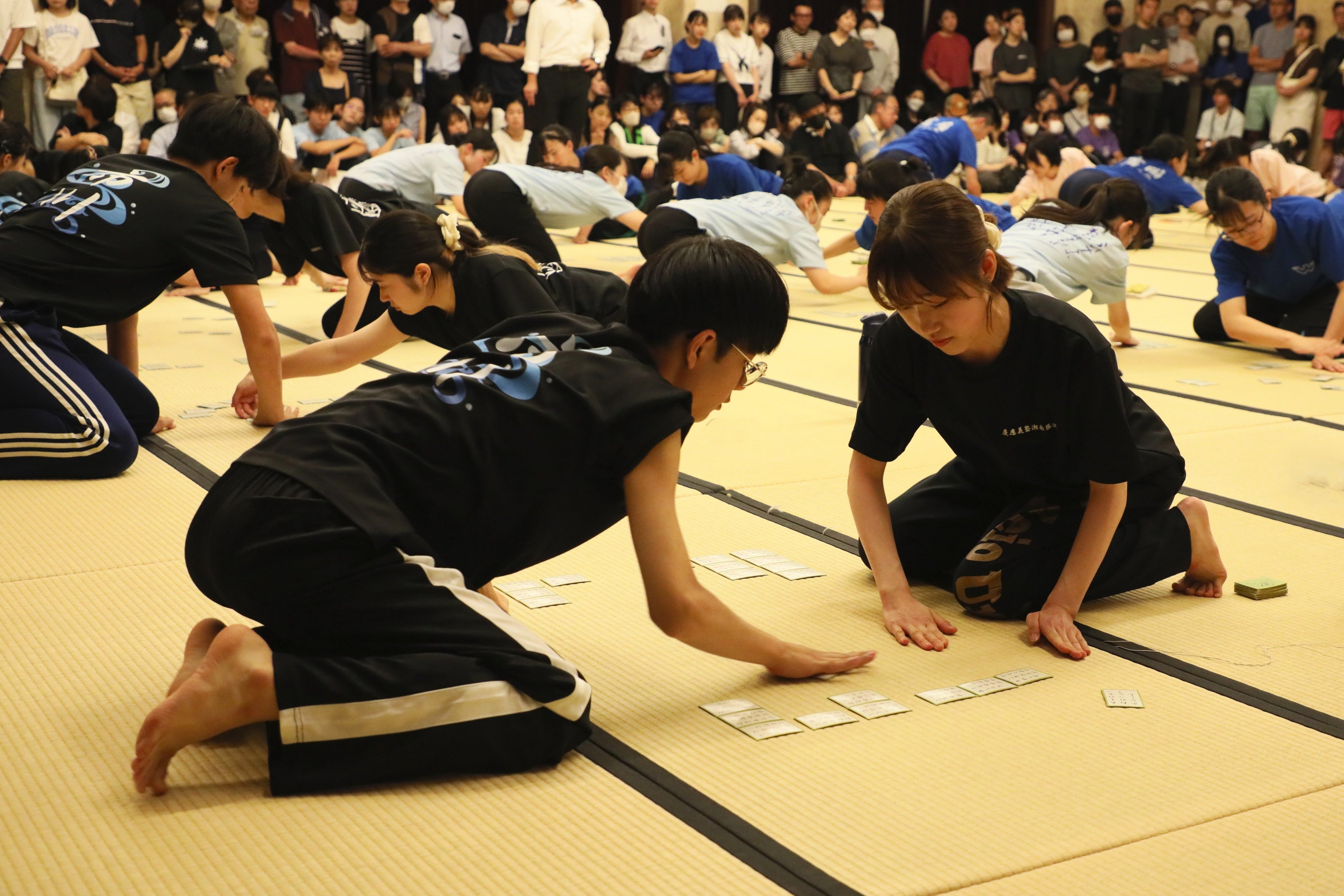 競技かるたは歌が詠みあげられると同時に札に反応し0.01秒の世界を競います。日々鍛錬を重ねてきた高校生たちが繰り広げる静かなる熱戦にご注目ください。