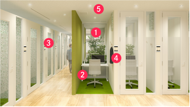 リモートワークに欠かせないWEB会議が可能な個室を26室ご用意しました。