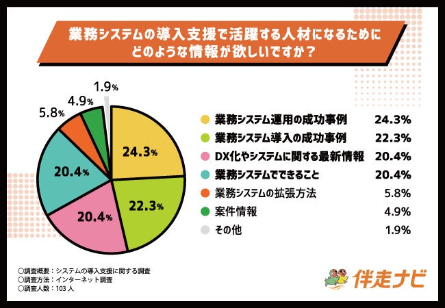 そこで今回、kintone情報メディア『伴走ナビ』(https://bansonavi.com/)と共同で、全国の導入支援者103名を対象に「システムの導入支援」に関するアンケートを実施しました。